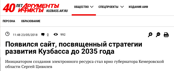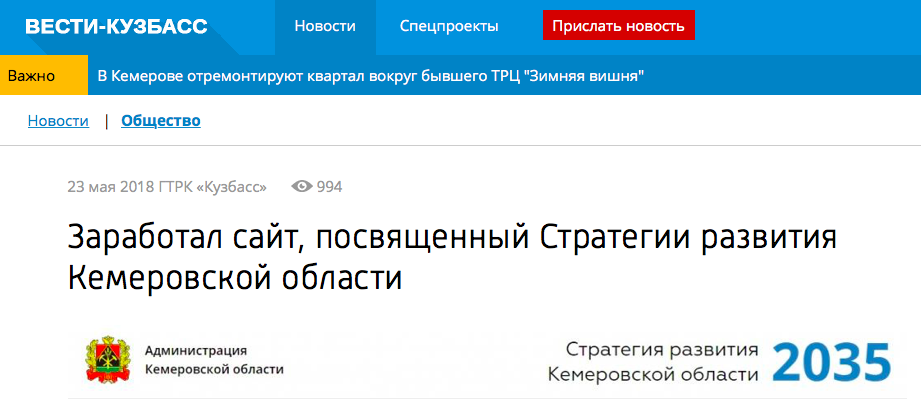 Промо-сайт для презентации «Стратегии развития региона до 2035 года» в рамках предвыборной кампании губернатора